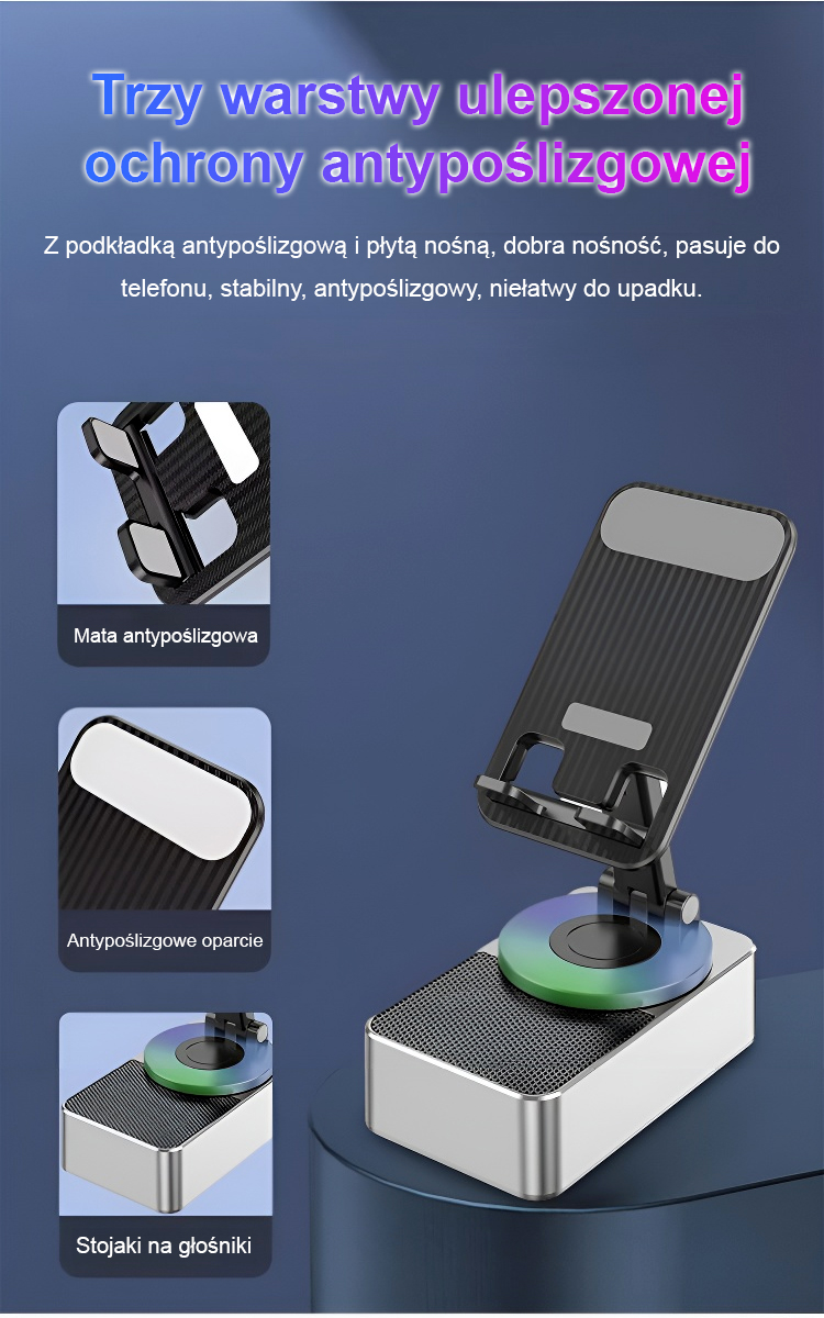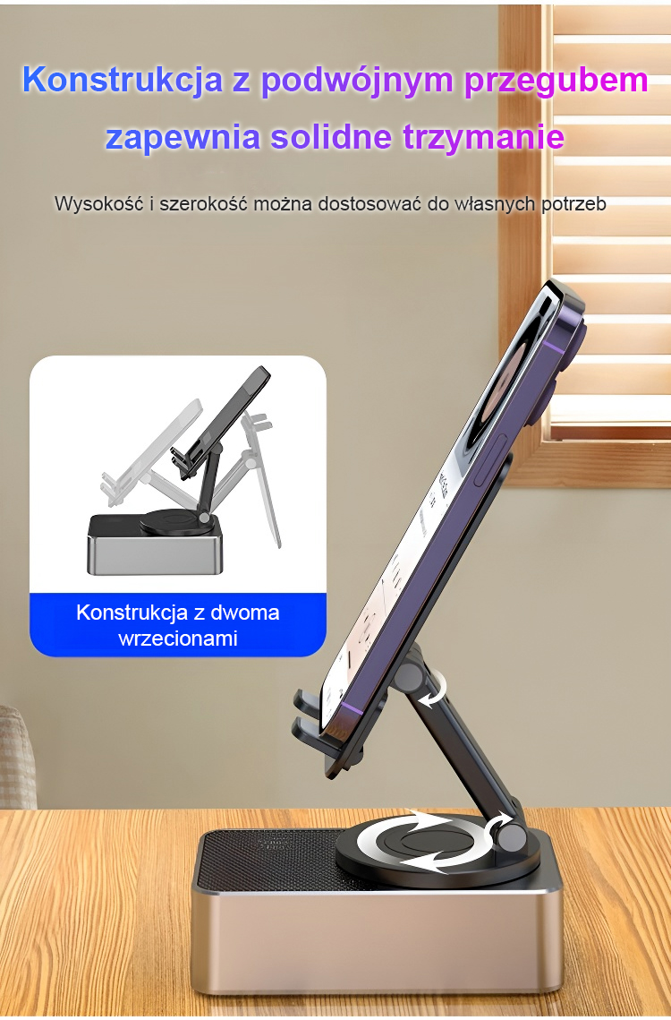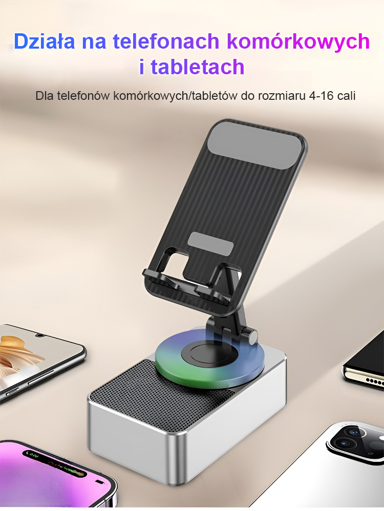【14 dni testu + 10 lat gwarancji】Nowoczesna ładowarka Bluetooth z głośnikiem i uchwytem do telefonu.⚡ ultraszybka ładowarka, głośnik stereo i obrotowy uchwyt! 📱